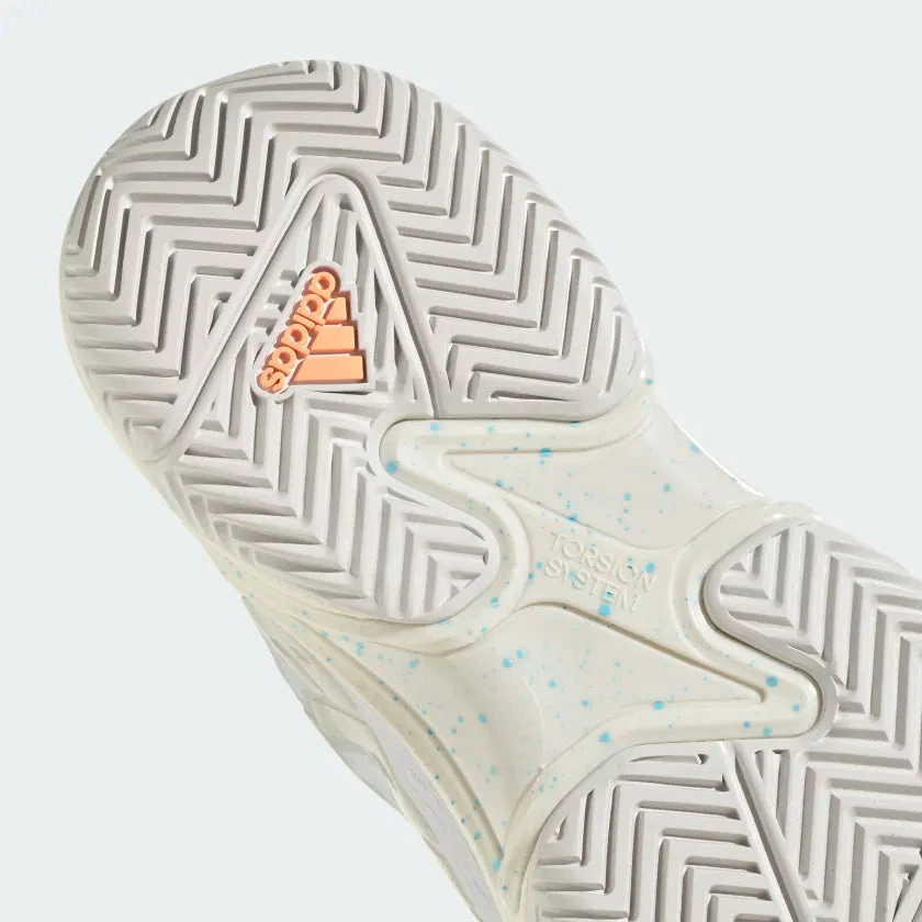 Serve for the oceans. Part of an adidas collection created for the world’s most famous grass court tournament, these Barricade tennis shoes put the spotlight on plastic waste. Built to control the court, they keep you firmly locked in thanks to their adaptive lacing system and foam Sensepods. Torsion System adds rock-solid stability through every slide and cut, while the Bounce midsole cushions landings. Educate and act. Head to Parley for the Oceans website to find out more, sign up and get involved at adidas.com/parley. This shoe’s upper is made with a high-performance yarn which contains at least 50% Parley Ocean Plastic — reimagined plastic waste, intercepted on remote islands, beaches, coastal communities and shorelines, preventing it from polluting our ocean. The other 50% of the yarn is recycled polyester.