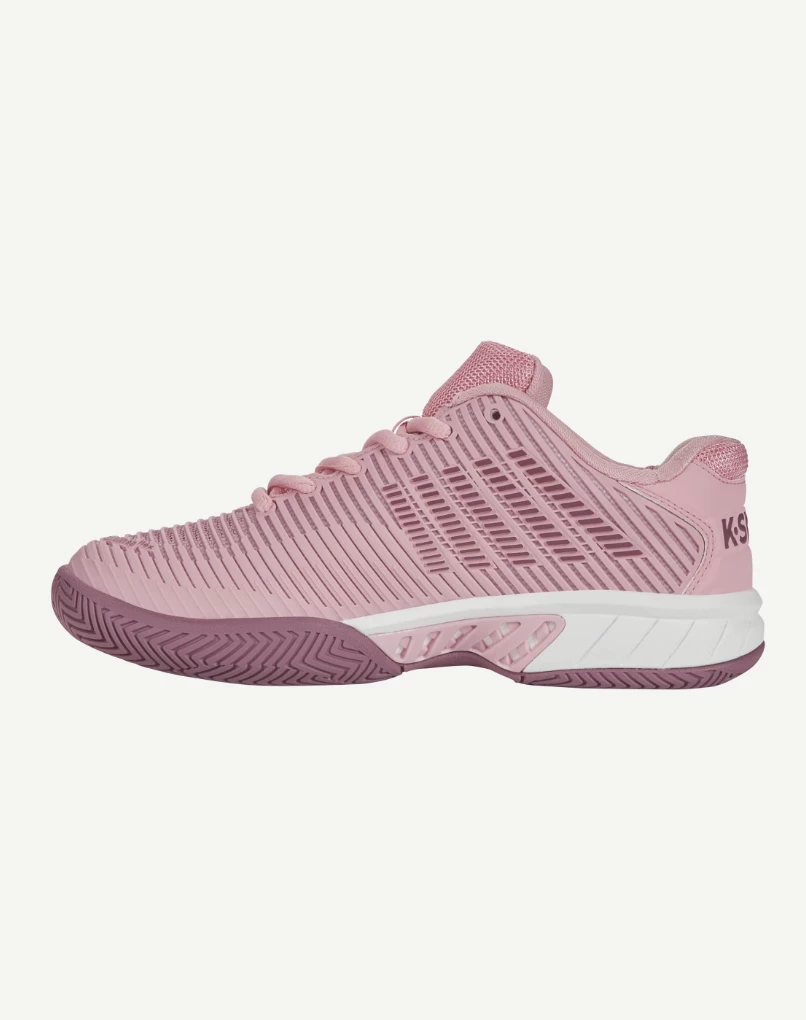 How does K-Swiss make its best-selling shoe model even better? By adding Surgelite midsole technology the Hypercourt Express 2 becomes even lighter and more comfortable while keeping its trademark breathability and generous fit. Additionally, the brand introduces Durawrap Flex, giving the shoe more support with no break-in period. The new upper design instantly makes the model fresh and modern looking which will impress current and new tennis players who wear the shoe. Ideal for hard court or clay court playing surfaces.