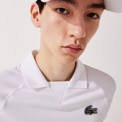 Don’t miss this exclusive new seamless polo Shirt for a second-skin sensation and great ease in movement. Crafted in breathable jacquard with ultra-dry properties, the high-performance piece wicks away moisture while you train. A new striped collar inspired by vintage models and a bicolour silicone crocodile bring signature touches to this trendy top.
