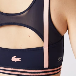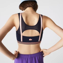 Lacoste Sport designed this athletic bra to adapt to your movements with a light touch. Built for performance, this piece offers medium support with a striped elasticized band, contrasting straps, and an ultra-light mesh back panel. With removable pads, it is designed to keep you dry and comfortable as you play.