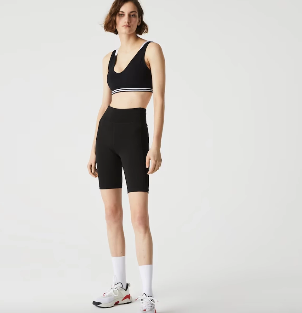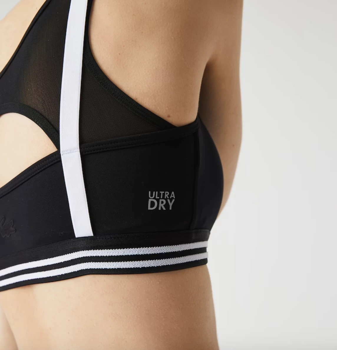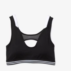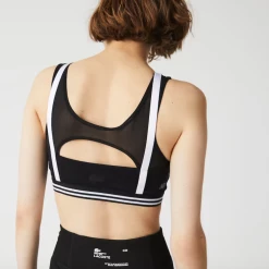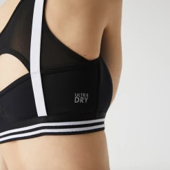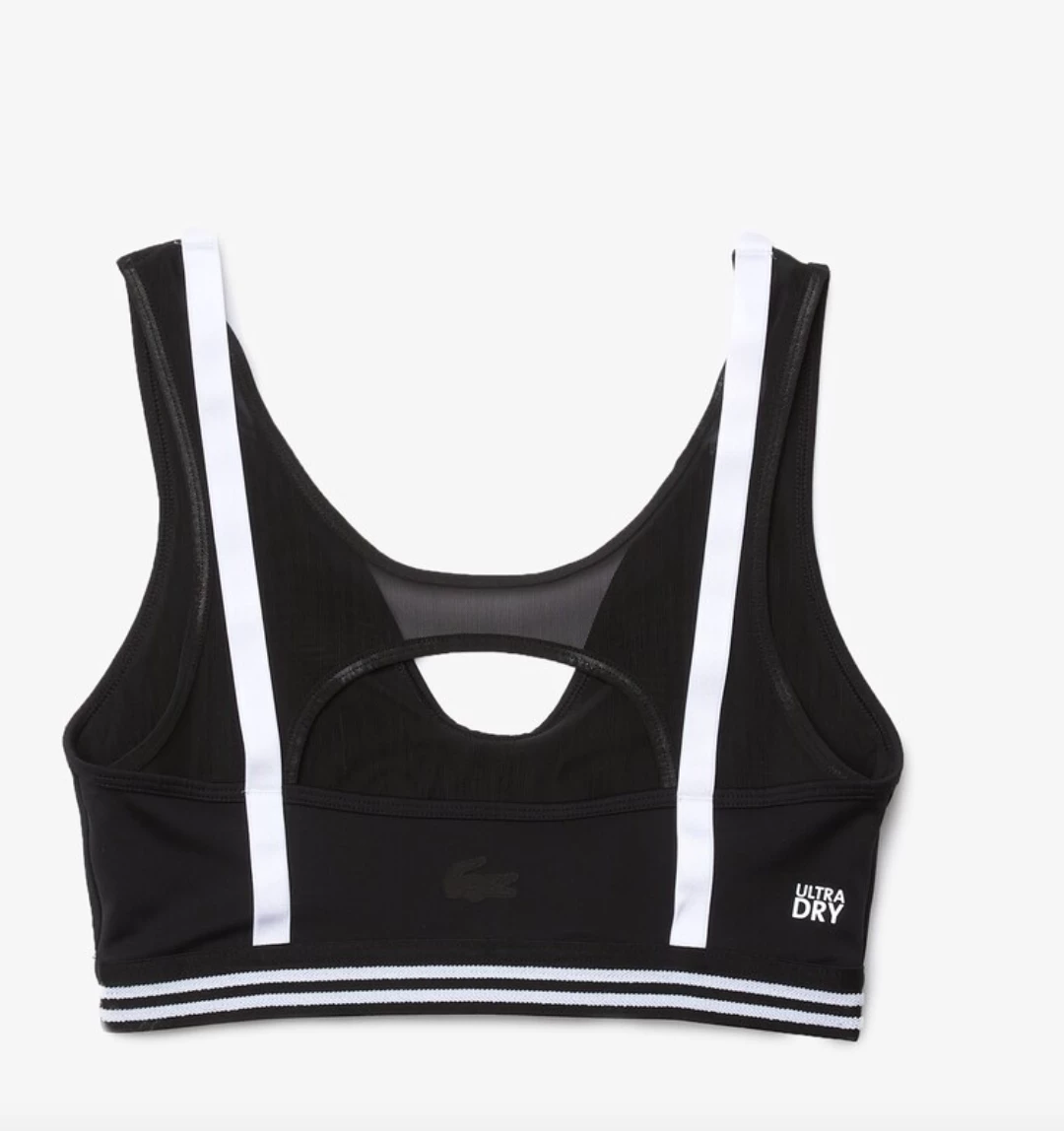 Lacoste Sport designed this athletic bra to adapt to your movements with a light touch. Built for performance, this piece offers medium support with a striped elasticized band, contrasting straps, and an ultra-light mesh back panel. With removable pads, it is designed to keep you dry and comfortable as you play.