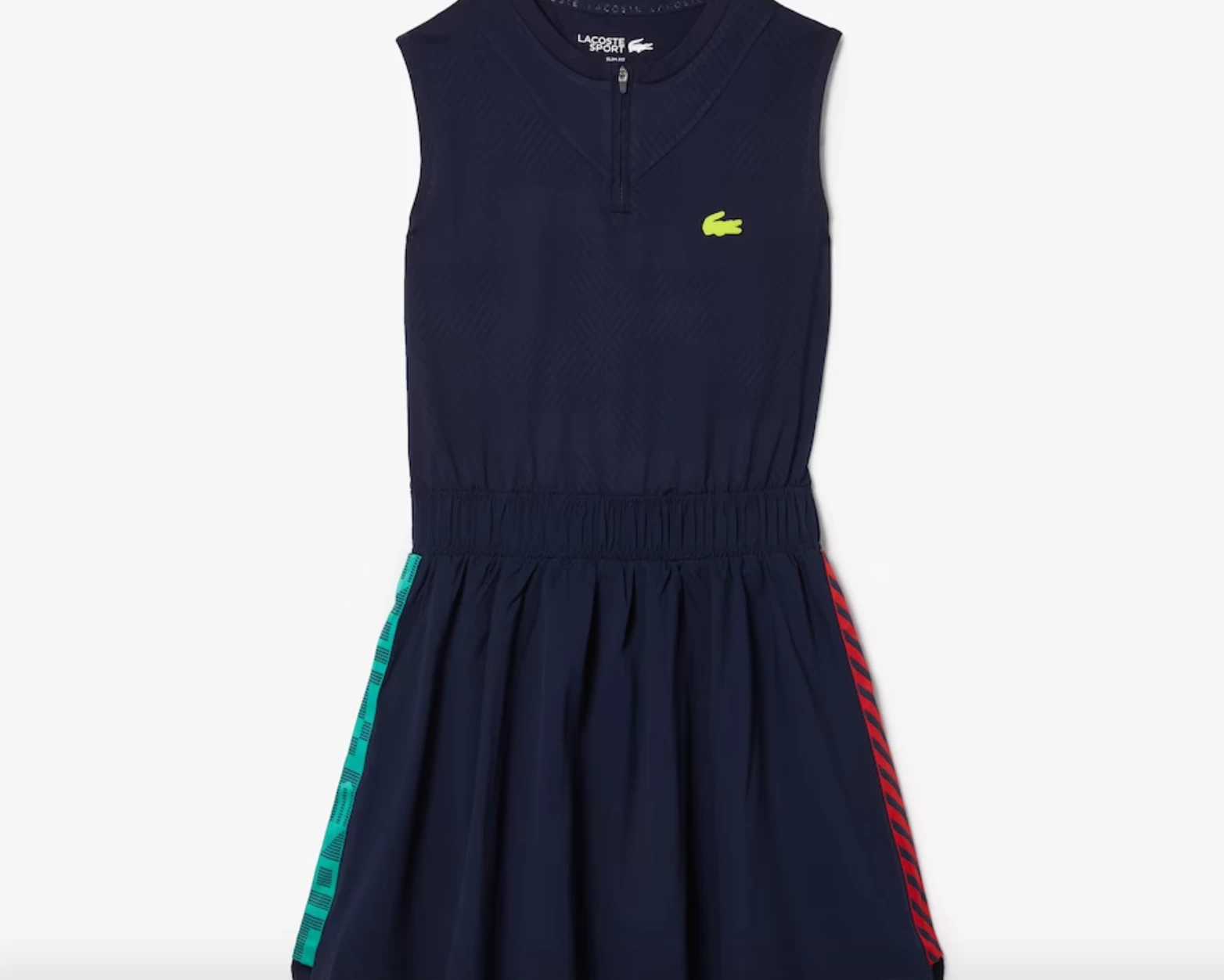 An iconic tennis dress with its own integrated anti-perspirant shorts. Legendary Lacoste, with added innovation.
