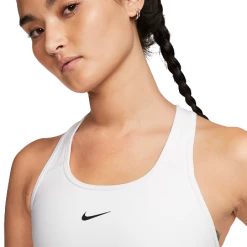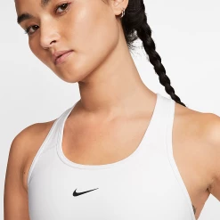 The Nike Dri-FIT Swoosh Sports Bra features our removable 1-piece pad designed to load easily from the top and keep a smooth and consistent shape, even after washing. A top-loading pocket holds all your essentials, while classic coverage provides medium-impact support for activities like spin, cardio and dance classes. This product is made from at least 50% recycled polyester fabric.